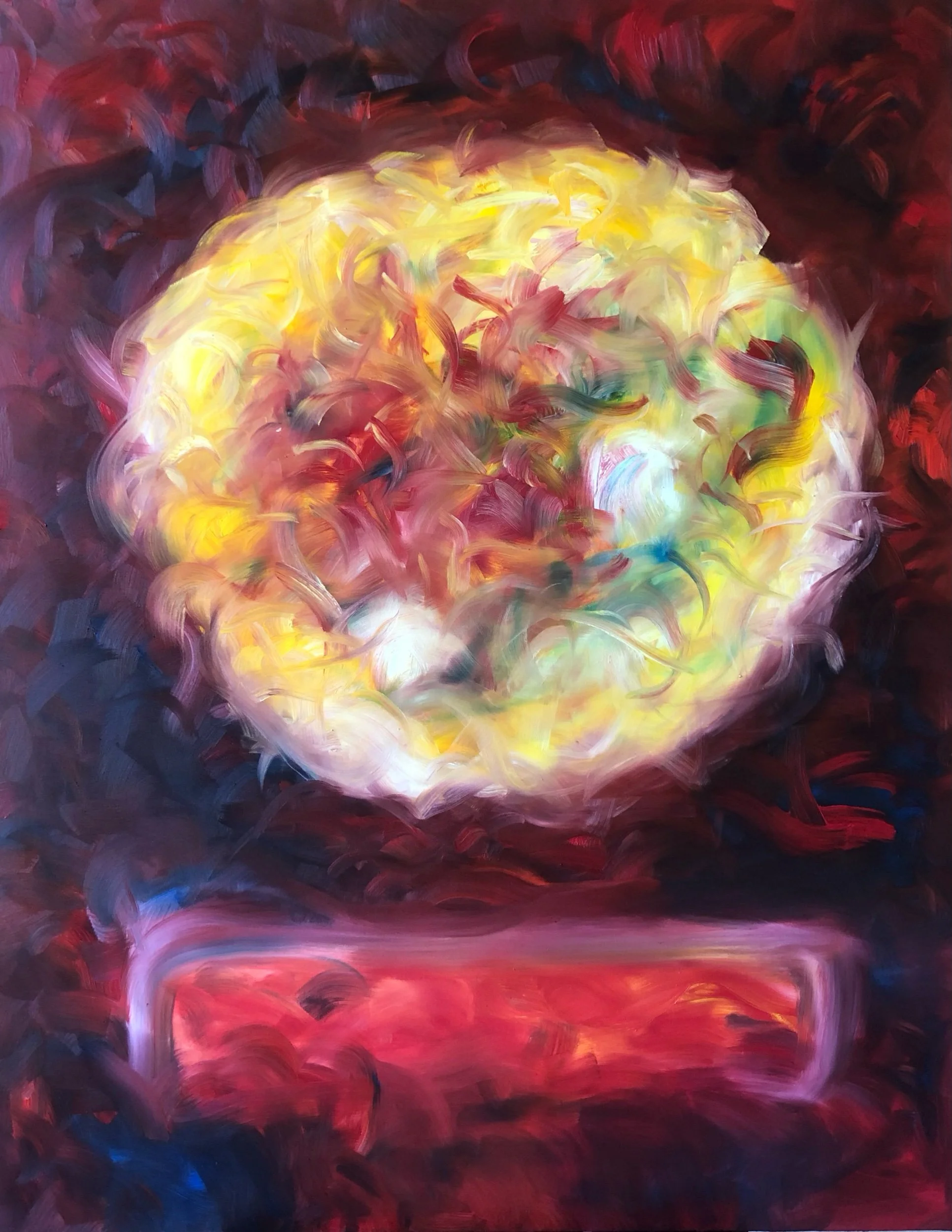 Une série dédiée aux efflorescences et autres flots lumineux qui traversent et palpitent dans nos réalités. Huile sur toile, 80F, 146x114cm, 2024-2025.